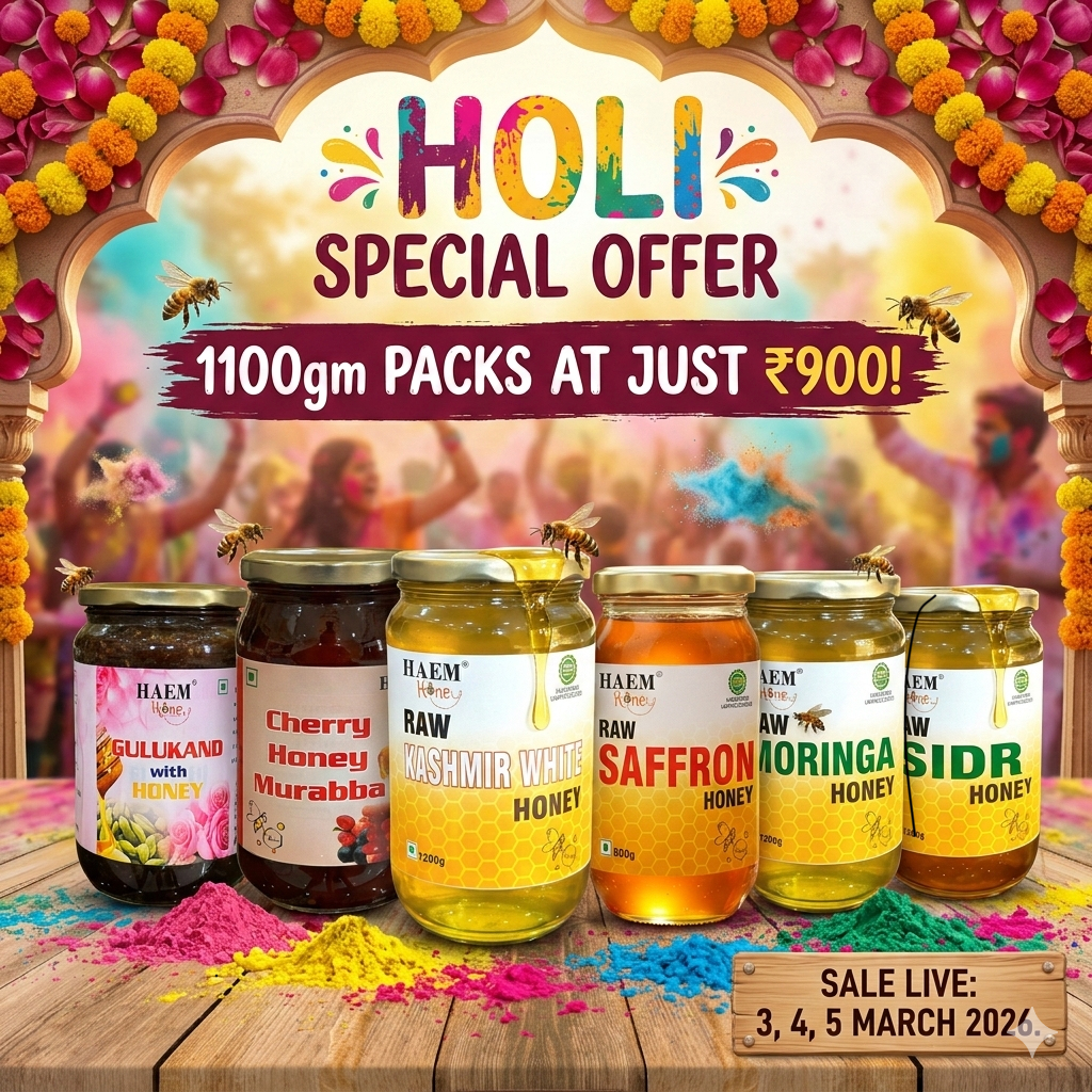 Sourced from the pristine valleys of Kashmir, our Multi-Flower Honey is a natural blend of nectar collected from a diverse range of Himalayan wildflowers. This unique floral mix gives the honey a rich taste, mild aroma, and golden hue. Collected by traditional beekeepers, it is raw, unfiltered, and unprocessed—preserving its natural enzymes, antioxidants, and health benefits.